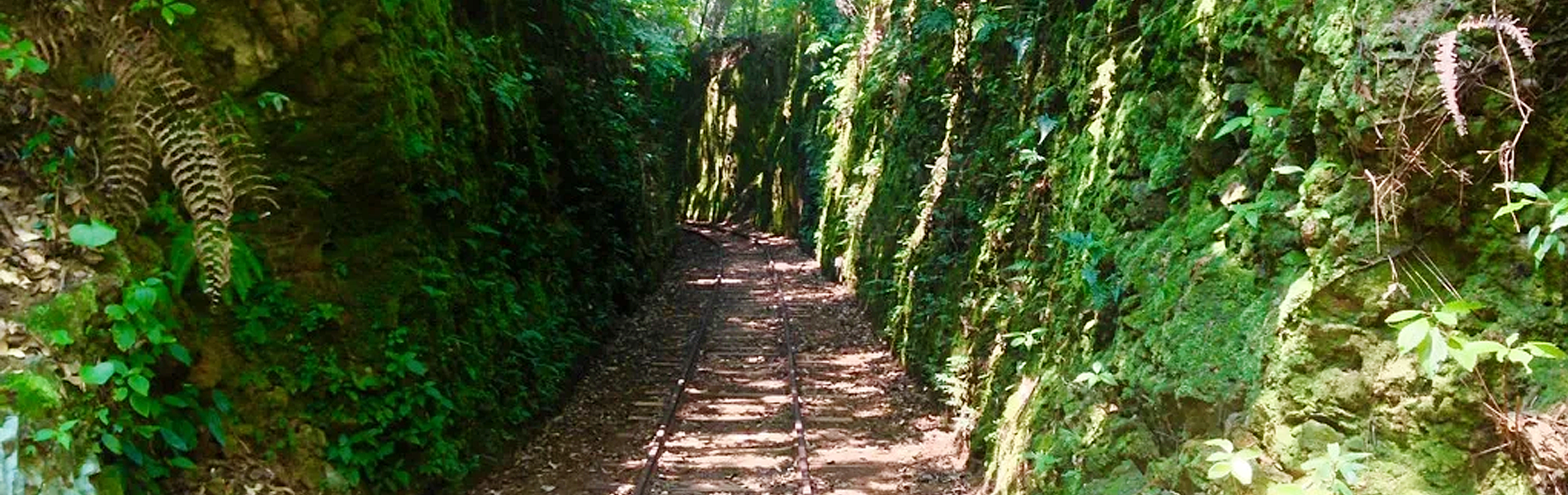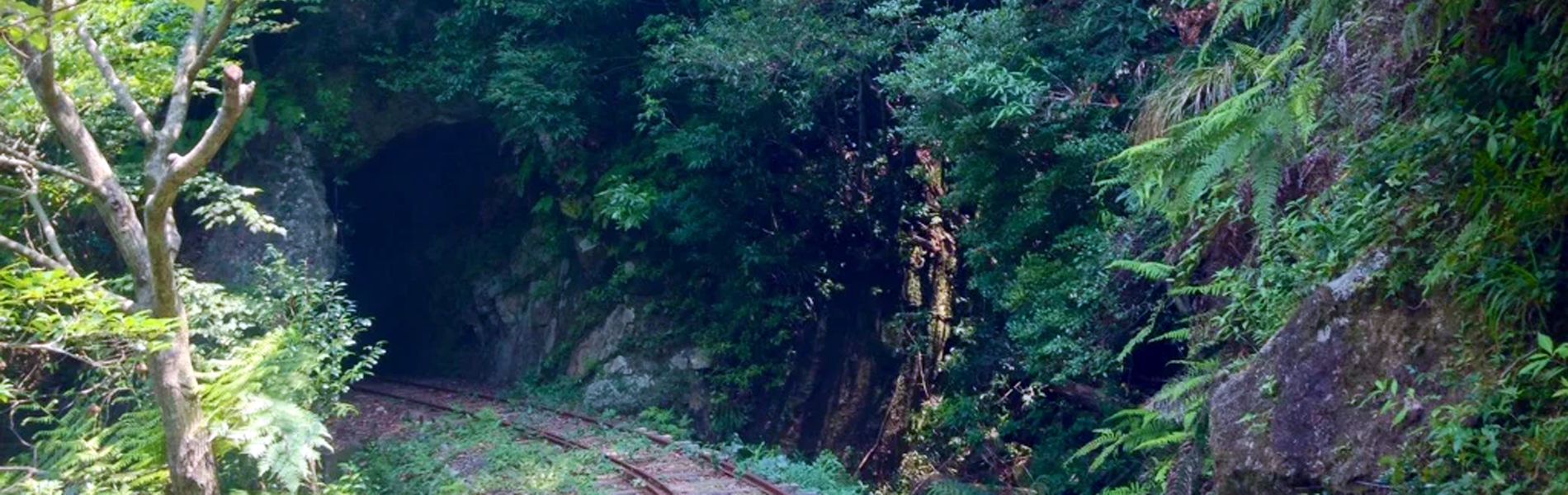 安房川に縫うように巡らされたその軌道を進むと、数々の美しい渓谷や、手掘りのトンネル、川を渡る鉄橋など、見たことのない屋久島の風景が次々と現れます。この森林鉄道は大正後期に敷設されて以来、山岳部の豊富な森林資源を里地へ運ぶ輸送手段として大切な役割を持っていました。